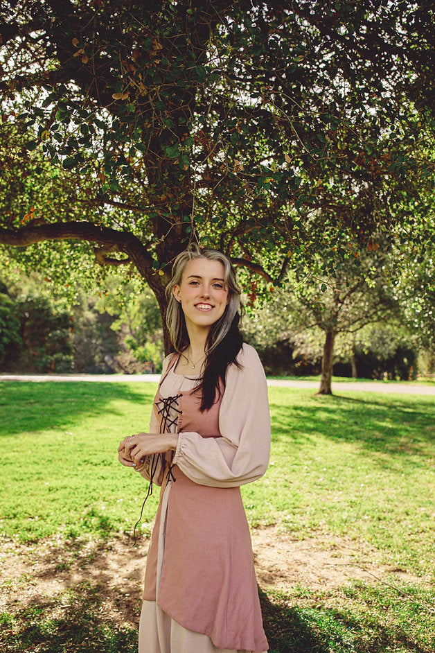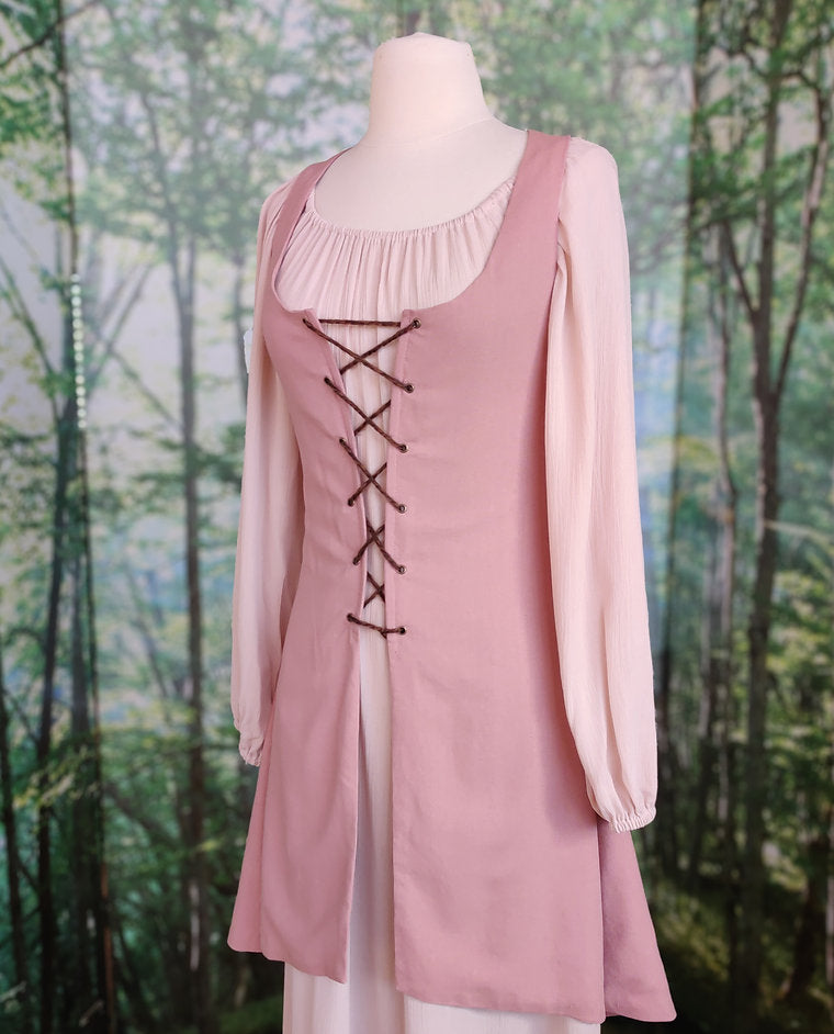 Medieval lace up over dress in dusty rose