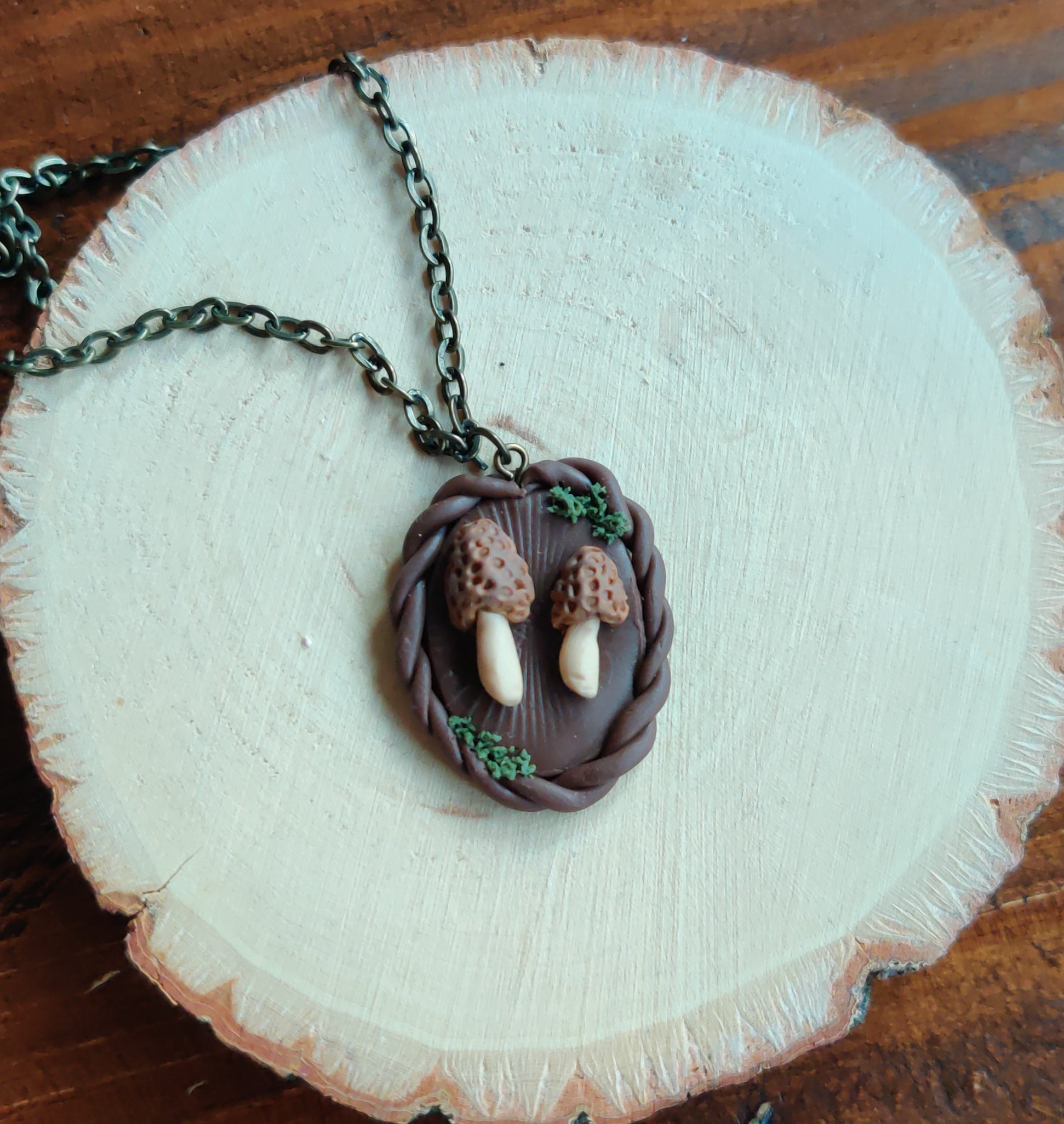 Mushroom specimen pendant - Morel pair